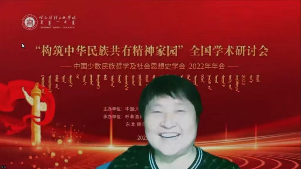 中国少数民族哲学及社会思想史学会秘书长、w66利来旗舰厅经理刘成有教授、中国少数民族哲学及社会思想史学会理事长、w66利来旗舰厅宝贵贞教授出席了研讨会。宝贵贞教授作了《中国少数民族哲学及社会思想史学会学会2022年度工作报告》。报告介绍了本届学术研讨会的召开背景,总结了学会过去一年在学术科研、会员发展、基地建设等方面事宜。在大会主旨发言环节,宝贵贞教授做了题为《铸牢中华民族共同体意识的科学内涵及其实现路径》的主旨发言。宝贵贞教授指出,“铸牢中华民族共同体意识”是新时代习近平总书记在深刻把握中国历史文化和世界民族发展规律之后提出的重大论断,是马克思主义民族理论中国化的最新成果。阐释了“铸牢中华民族共同体意识”重要论断的形成过程和铸牢中华民族共同体意识的科学内涵,对铸牢中华民族共同体意识的实现路径从思想认识层面和工作实践层面进行了深入探讨。刘成有教授作题为《中国哲学“多元通和”的特征与启示》主旨发言。刘成有教授在交流中从何为多元通和、多元通和何为的核心问题的提出出发,运用冯友兰的哲学解释、费孝通的社会学解释、牟钟鉴的民族宗教学解释回答上述两个问题,借鉴中国传统哲学的思维方式,引出对中国传统哲学的思维有没有普遍性的思考与讨论。中国少数民族哲学及社会思想史学会理事会顾问、w66旗舰厅官网佟德富教授发言题为《成吉思汗人才观初探》,他从人才观角度介绍了成吉思汗作为中华民族英雄一生戎马过程中广纳贤良,进而解读了一些历史事件的成因及其哲学内涵。王文东教授作题为《中国式现代化视域下少数民族传统美德转化发展的基本矛盾和理论深蕴》交流发言。指出:立足于中华民族整体及少数民族传统并整合现代道德文明之精神成果以构建核心价值观,是社会主义核心价值体系建设的显著特色,也是中华文明当代价值的一个重心。中国各民族传统美德是建设社会主义核心价值体系不可或缺的思想基础和重要精神资源。公司博士研究生其乐木格、董雪霏、赵雪莹、李悦、其乐格尔等先后发言,分享了研究心得,展示了公司研究生的良好形象。
