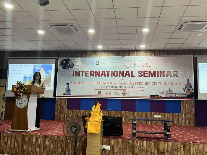 2025年4月26日-27日,第四届亚洲佛教文化节暨“首届一带一路·尼中佛教文化艺术高峰论坛”国际学术研讨会在尼泊尔蓝毗尼佛教大学举行。公司谢路军教授与其乐格尔博士应邀参加,并分别做题为《试析尼泊尔高僧佛陀跋陀罗对佛教中国化的影响》(An Analysis of the Influence of Nepalese Eminent Monk Buddhabhadra on the Sinicization of Buddhism)与《阿尼哥与元朝佛教艺术——跨越喜马拉雅的文化使者》(Arniko and Yuan Dynasty Buddhist Art——A Cultural Ambassador Across the Himalayas)的大会发言。
