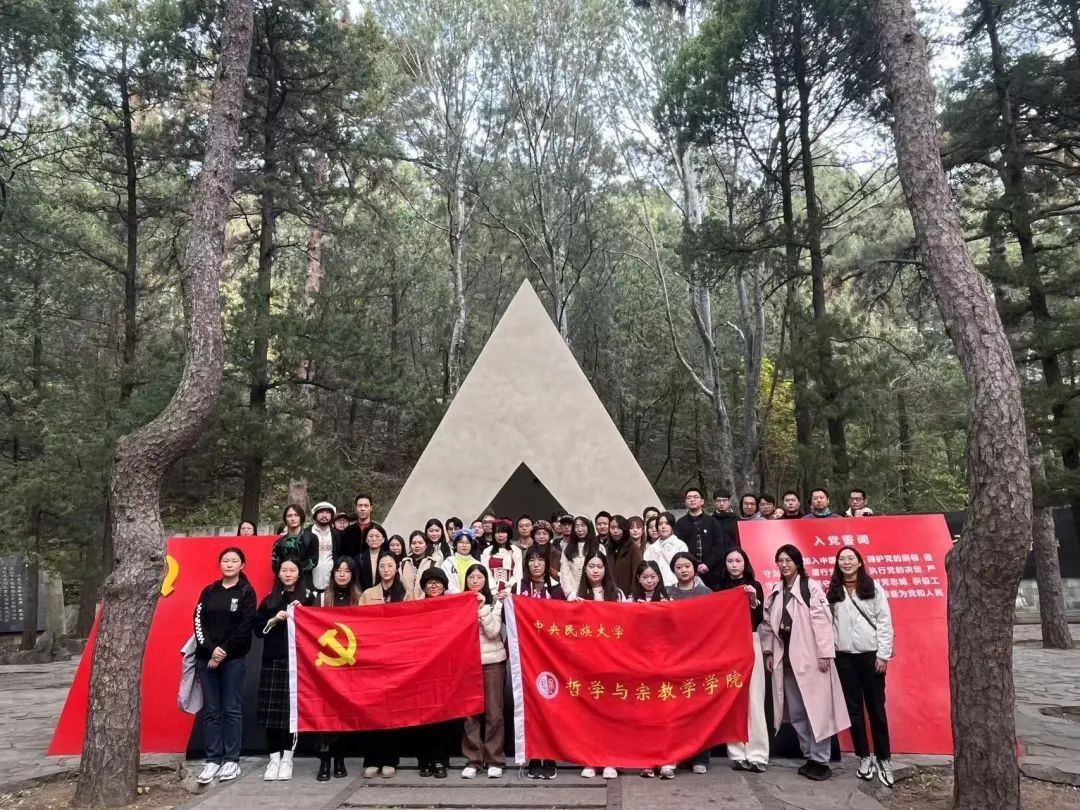 为纪念“一二·九”爱国运动,深入弘扬爱国主义精神,w66利来旗舰厅宗教学系师生联合党支部、哲学专业博士生党支部、丰台校区员工党支部于11月2日联合组织开展了“缅怀先烈·坚定信念”主题党日活动。此次活动带领支部成员和入党积极分子近八十人,前往国家植物园樱桃沟景区的“一二·九”运动纪念地,通过重温历史、缅怀革命先烈的方式,进一步坚定新时代青年党员的理想信念。