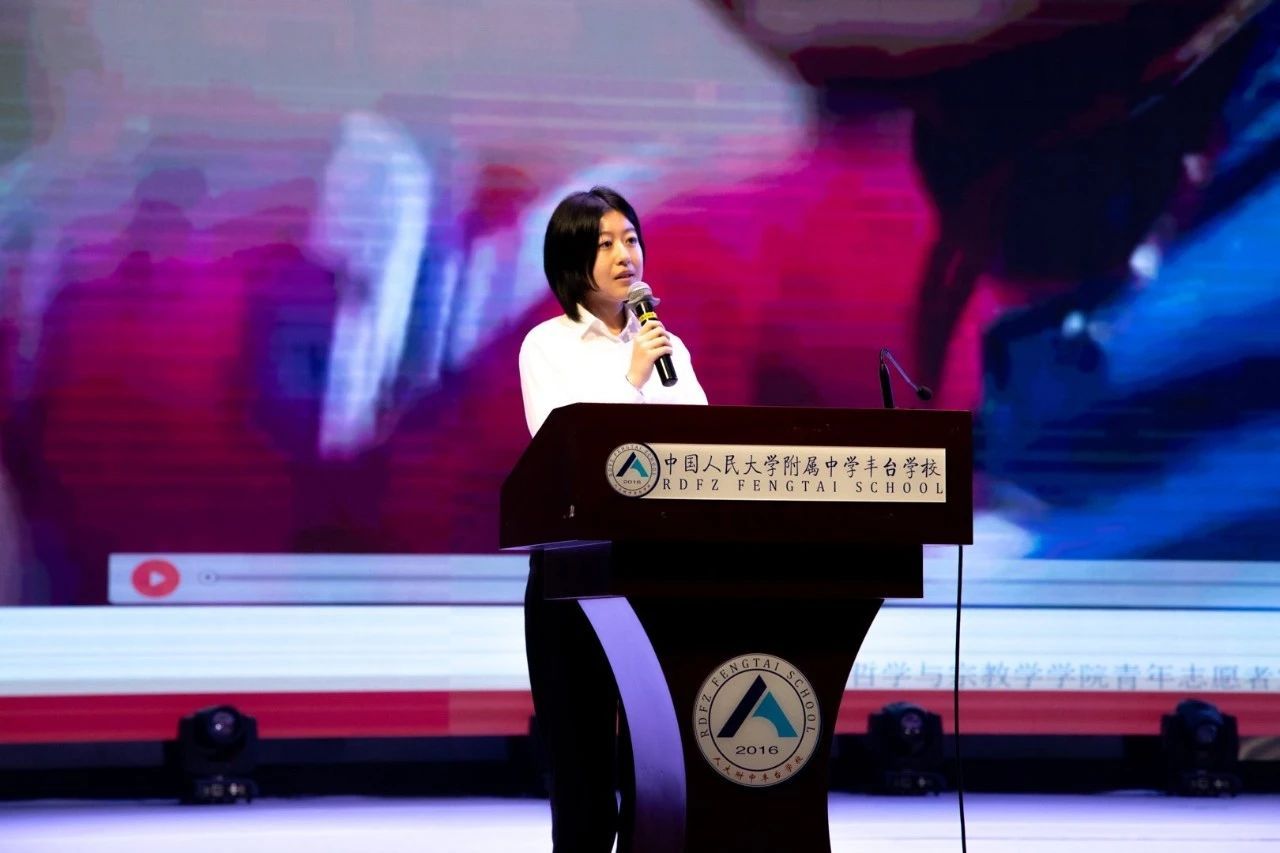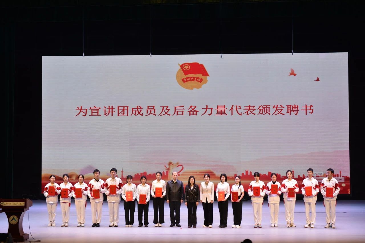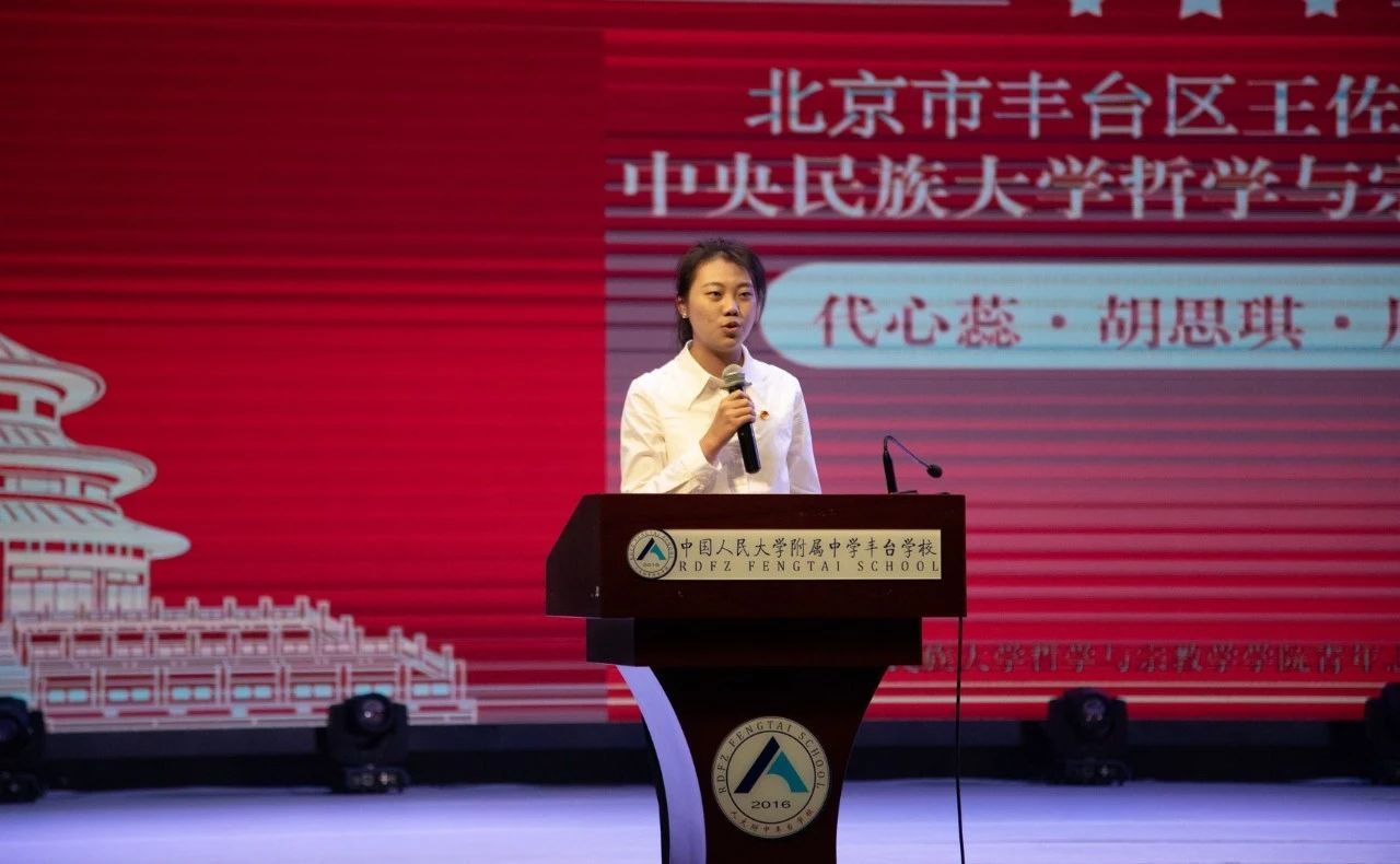 北京市丰台团区委副书记黄敏慧、w66旗舰厅官网哲学与宗教学公司党委副书记杨景仪、王佐镇党委委员、组织委员黄修良向宣讲团成员及人大附中丰台公司宣讲团后备力量代表颁发聘书。