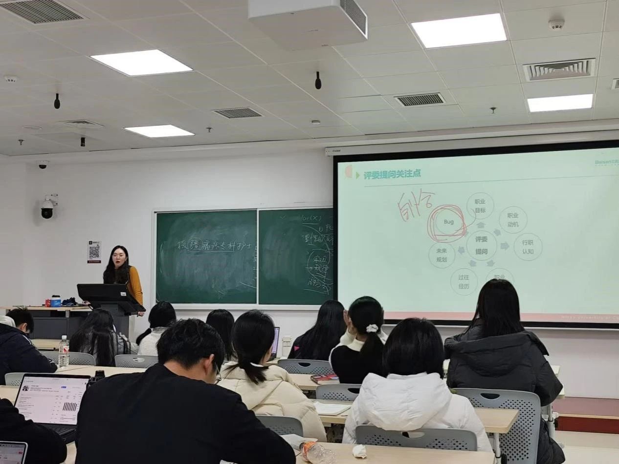 随后,刘老师针对赛前准备进行了科学指导,特别指出了准备过程中的难点和重点。他提醒同学们,在职业规划中,既要深入挖掘自身的兴趣、能力与价值观,又要关注职业的发展趋势和需求,构建对职业目标的内在认同和差异化定位,以更好地满足大赛的评分要求。