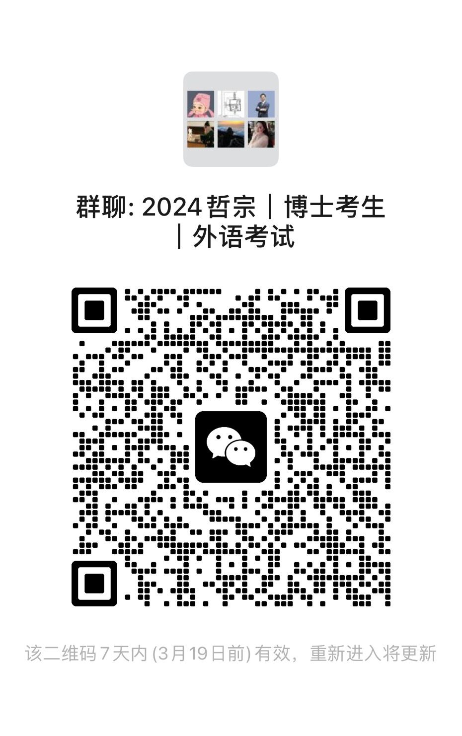 请需要参加2024年度博士外语统一考试的考生于2024年3月15日前扫码进群,已通过外语免试审核的考生无需进群。